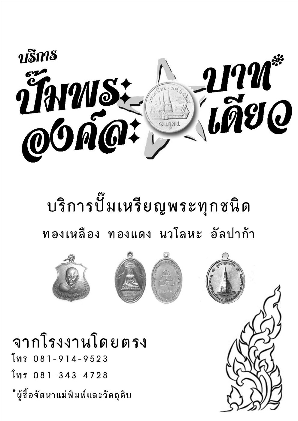 บริการปั๊มเหรียญพระทุกชนิด ทองเหลือง ทองแดง นวโลหะ อัลปาก้า องค์ละบาทเดียว จากโรงงานโดยตรงไม่ผ่านนายหน้า