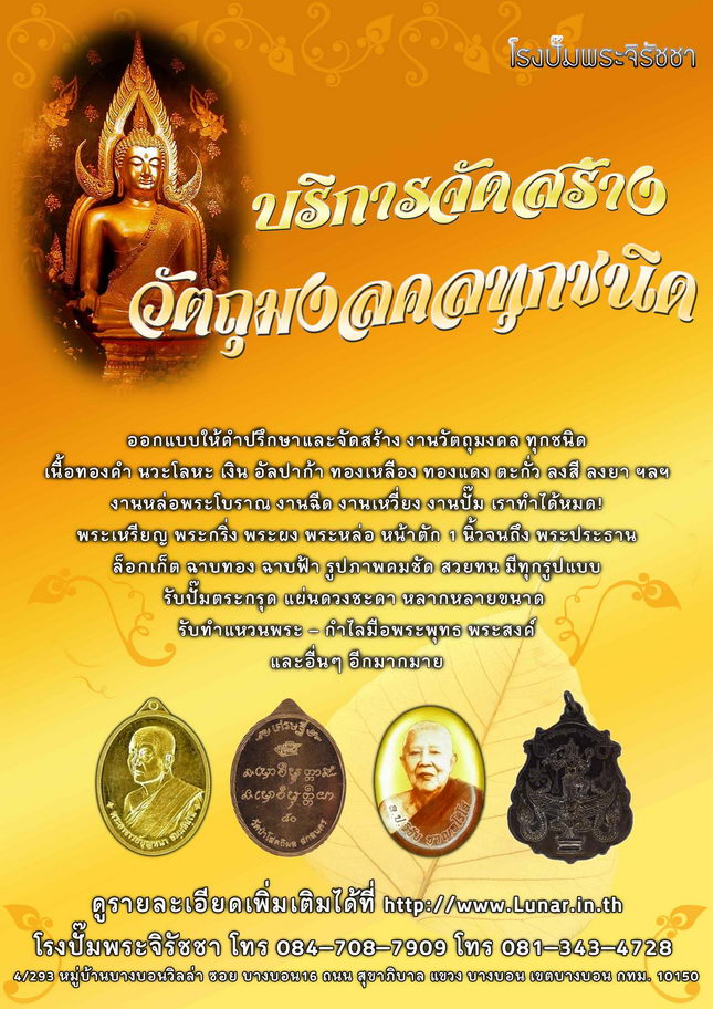 โรงงานปั๊มพระ ยินดีให้คำปรึกษา และบริการสร้างวัตถุมงคลทุกชนิด