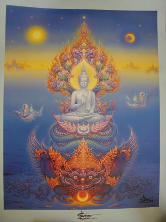 ภาพพิมพ์สีน้ำมัน (ผ้าใบ) พระประทานพร วัดร่องขุน ขนาด 73 * 95 ซ.ม.