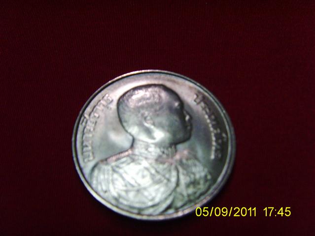 ด้านหน้า: เป็นพระบรมรูปพระบาทสมเด็จพระสมเด็จพระมงกุฎเกล้าเจ้าอยู่หัวผินพระพักตร์เบื้องขวา ริมขอบซ้ายมีข้อความว่า "มหาวชิราวุธ" ริมขอบขวามีข้อความว่า " ประเทศไทย" ด้านหลัง: เป็นพระบรมรูปพระบาทสมเด็จพระสมเด็จพระมงกุฎเกล้าเจ้าอยู่หัวผินพระพักตร์เบื้องขวา ริมขอบซ้ายมีข้อความว่า "มหาวชิราวุธ" ริมขอบขวามีข้อความว่า " ประเทศไทย