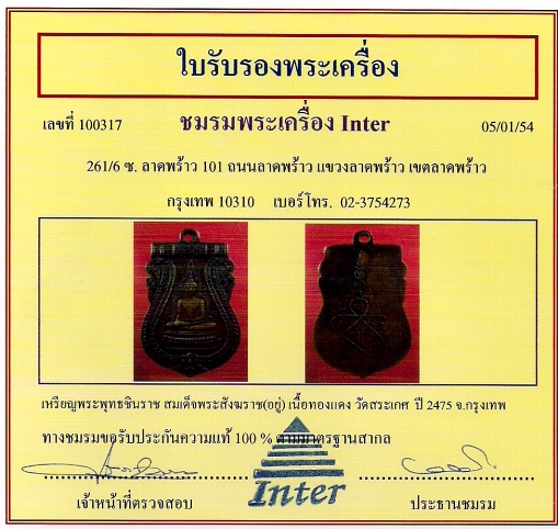 @@@@ เหรียญพระพุทธชินราช สมเด็จพระสังฆราช(อยู่) วัดสระเกศ เนื้อทองแดง ปี 2475 ประกอบพิธีปลุกเสกใหญ่ สภาพสวย รับประกันความแท้100 % พร้อมบัตรรับรอง @@@@