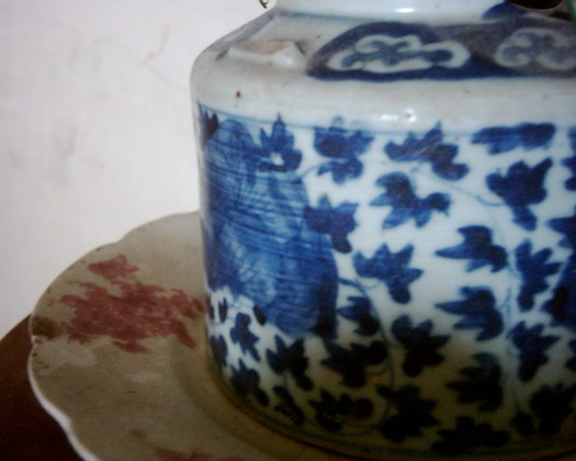 กาน้ำเก่าลายคราม(เคลือบขาวน้ำเงิน) ลายสวยดี