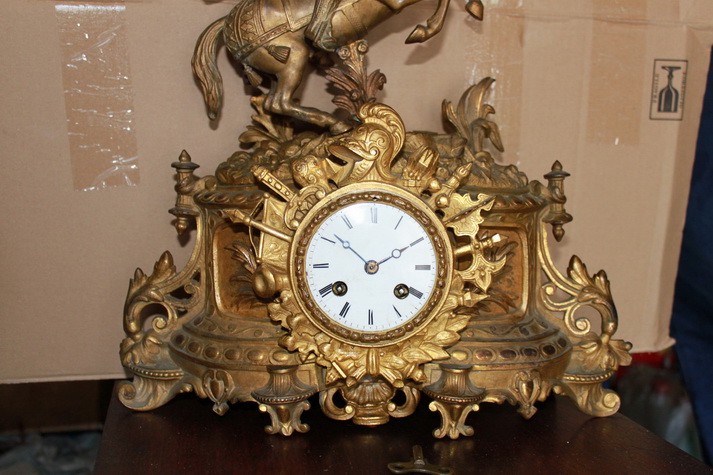 ขายนาฬิกาโบราณ งานติวเตอร์ รูปอัศวินขี่ม้า นาฬิกายังใช้ได้เป็นปกติ มีลูกตุ้มอยู่ด้านหลัง ราคา 24,000 บาท สามารถติดต่อสอบถามได้ที่ 0879111769 คุณพัฐ