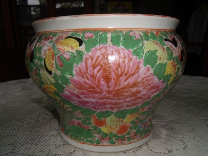 - กระถางต้นไม้ลายคราม(ญี่ปุ่น) ลายมังกรด้นเมฆ ขนาดปากกว้าง 11 นิ้ว สูง 9 นิ้ว ขอบปากบิ่น 1 จุด นอกนั้นสมบูรณ์ ราคาไม่แพงครับ