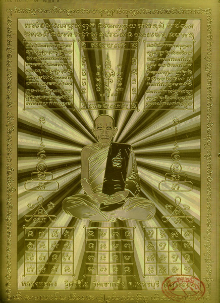 แผ่นยันต์มหาลาภ ทอง 24 Kหลวงพ่อคง วัดเขากลิ้ง รุ่นเพชรกลับ เสาร์ 5 ปี 2554