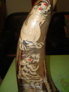ขาย เขาแกะสลักรูปเสือและมังกรเป็นเขาแท้ๆ