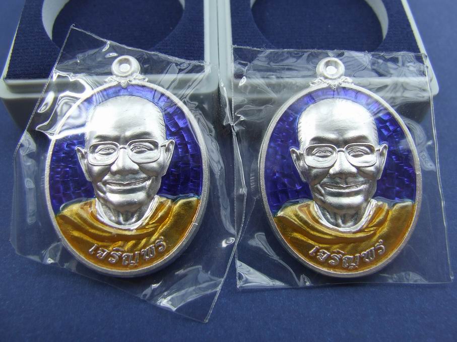9. เหรียญรูปไข่หลวงพ่อจรัญ เจริญพรครึ่งองค์ (เจริญพรล่าง) เนื้อเงินลงยาสีน้ำเงิน (จากกรรมการใหญ่) สร้าง 399 เหรียญ ๆ ละ 4,000 บ.