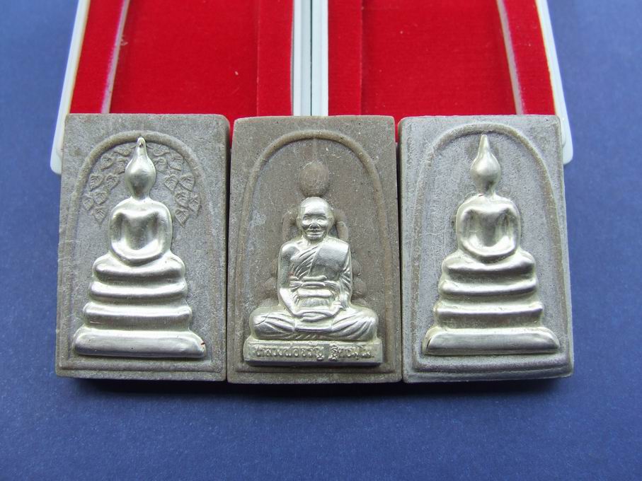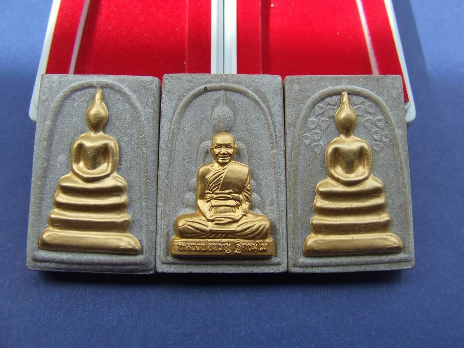 26. พระสมเด็จพิมพ์ซ้อนหลวงพ่อจรัญ เนื้อว่าน 108 หลังพระคาถามหากา หน้ากากนาก (จากกรรมการสร้างรั้ว) สร้าง 999 ราคา 700 บ. (พิเศษ 1 ชุด 3 องค์ ราคา 1,800 บาท)