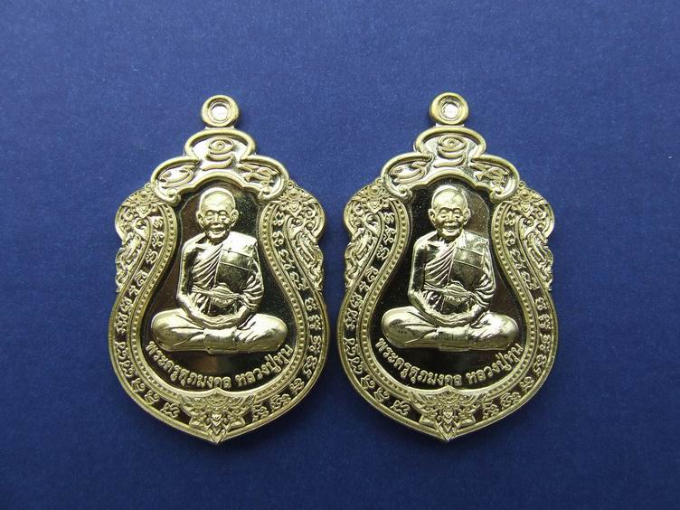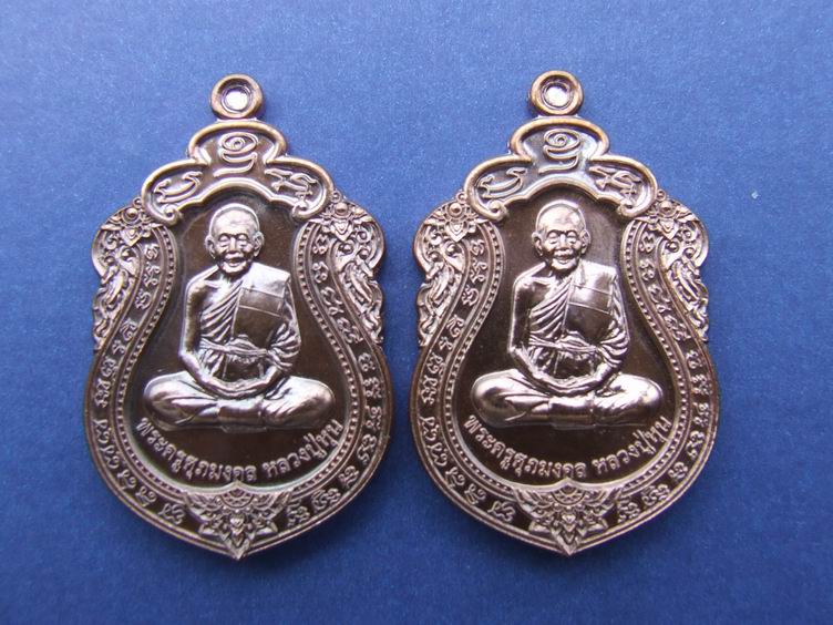 4. เหรียญหลวงปู่หุน รุ่นสรงน้ำ 54 เนื้อทองฝาบาตร สร้าง 2,999 องค์ ราคา 350 บาท