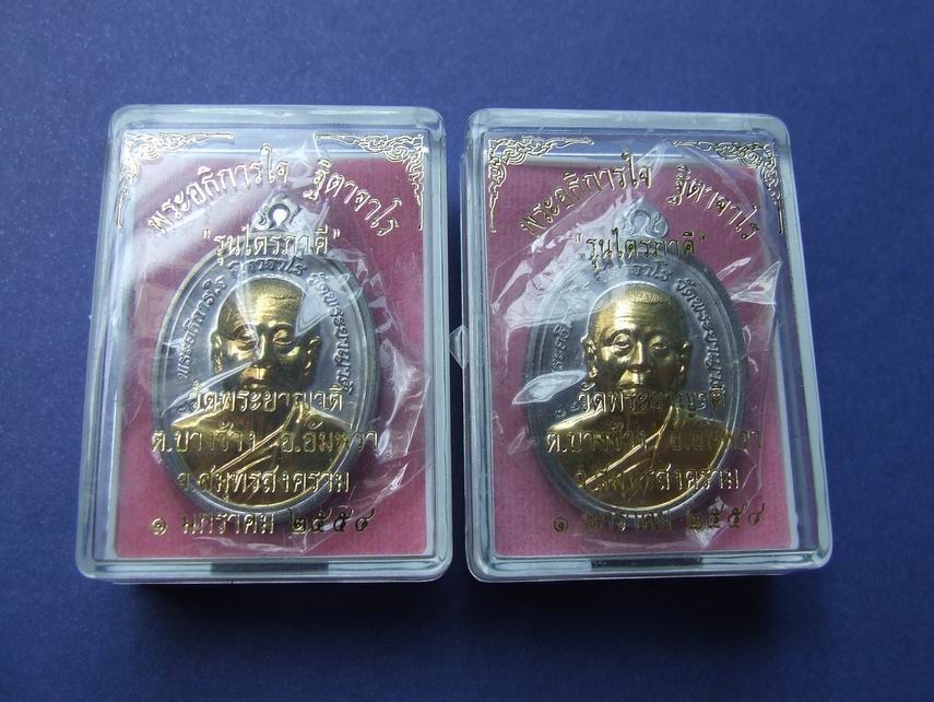 หรียญพระอธิการใจ รุ่นไตรบารมี โดยพระอธิการใจ ฐิตาจาโร วัดพระยาญาติ ต. บางช้าง อ. อัมพวา จ. สมุทรสงคราม