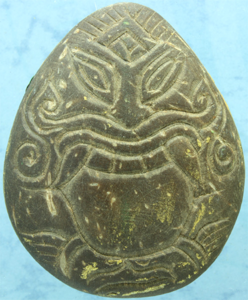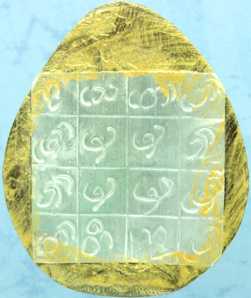 พระราหูกะลาตาเดียว หลังแผ่นเงินจารมือ ครูบาเลิศ วัดทุ่งม่านใต้ สูง 4.8 ซ.ม.