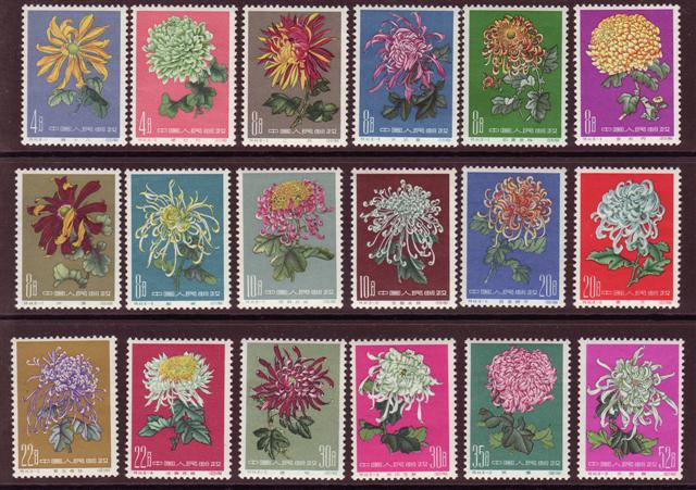 แสตมป์จีน ชุดดอกเบญจมาศ ปี1960
