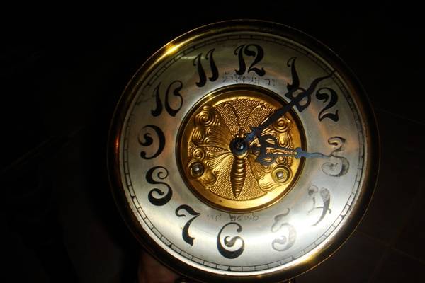 นาฬิกา กระสือ ตัวเลขตลก เข็มสะบัด ลูกตุ้มลายหายาก ตัวเรือนมีเขียนว่า ที่ระลึกในงานพระราชพิธี