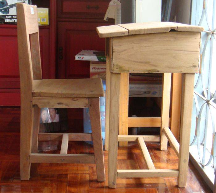 โต๊ะเขียนหนังสือของเด็กสมัยก่อนเป็นไม้สักอ่ะค่ะ