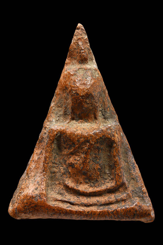นี้เป็นพระนางพญา พิมพ์ใหญ่เข่าโค้ง กรุวัดนางพญา พิษณุโลก มีคราบราดำปรากฎอยู่ประปรายทำให้องค์พระดูเด่นเป็นสง่า แก่ว่านเกษรดอกไม้ เนื้อพระหนึกนุ่ม เห็นเม็ดผดเป็นเอกลัษณ์ที่สำคัญของหระนางพญา และมีพุทธคุณครอบจักรวาล
