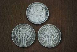 เหรียญเงิน 1 บาท พระบรมรูป - ไอราพต ในสมัยรัชกาลที่ 6 ปี 2458-2460 มีหลายเหรียญ ราคาเหรียญ 750