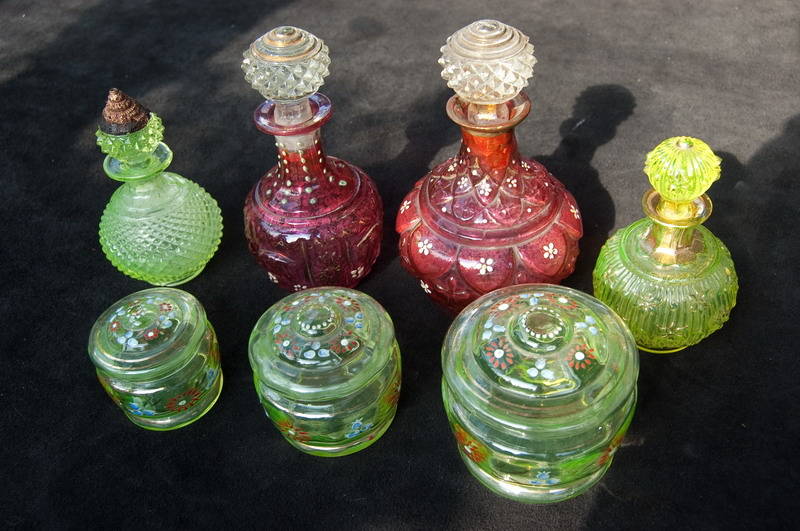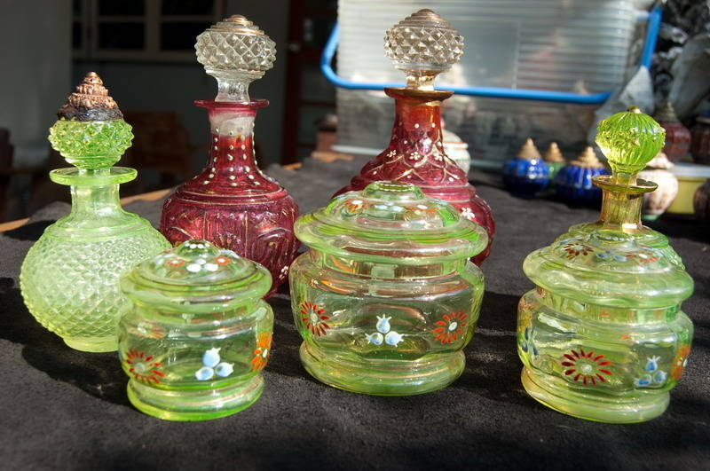 ขายขวดนำ้หอมเขียวเล็กจุกหัก ปากบิ่นตัวมีเส้นเล็กน้อย 3,500 บาท
