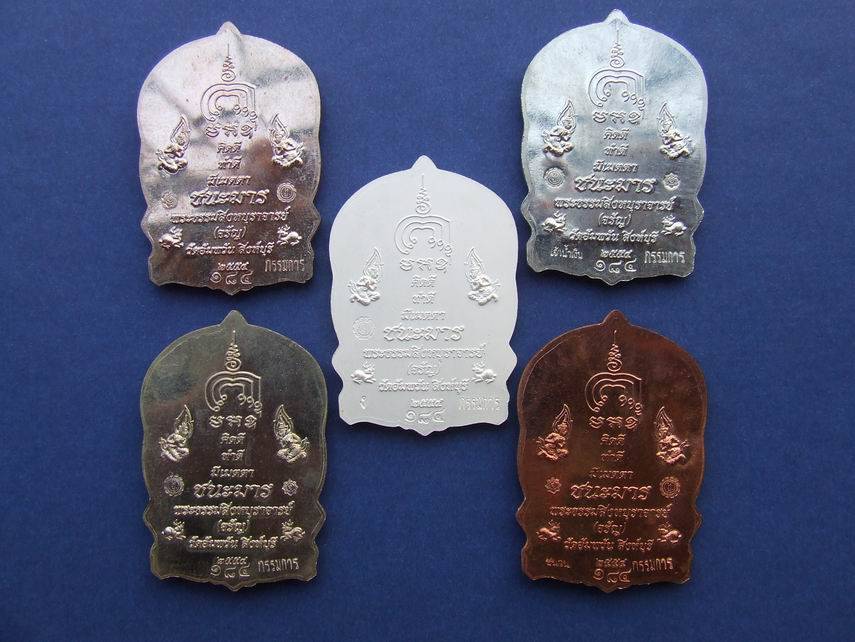 1. กล่องกรรมการเหรียญนั่งพานหลวงพ่อจรัญ 5 เหรียญ (บรรจุอยู่ในกล่องกำมะยี่สีแดงอย่างดี) สร้าง 259 ชุด ราคากล่องละ 15,000 บาท หมายเลขเดียวกันทั้งชุด