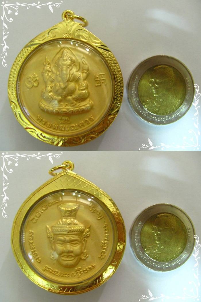 พระพิฆเนศปางพระวิชัยคณปติหลังพ่อแก่เนื้อทองพ่นทรายเลี่ยมทองไ มครอนแท้ค่ะ
