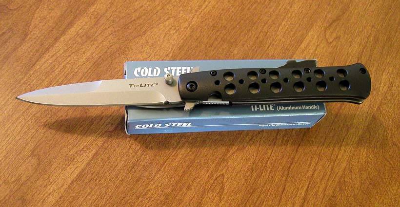 ขายมีดพับ Cold Steel Ti-lite 4" ยังไม่ได้ใช้งาน นับเป็นมีดที่เปิดเร็วที่สุดในโลก Cold Steel Ti-Lite , 4" Japanese AUS 8A Stainless Steel , Zytel Handles
