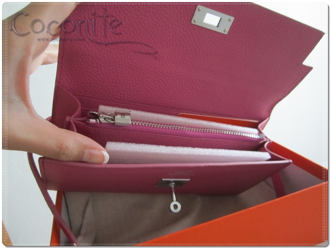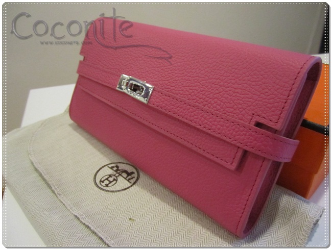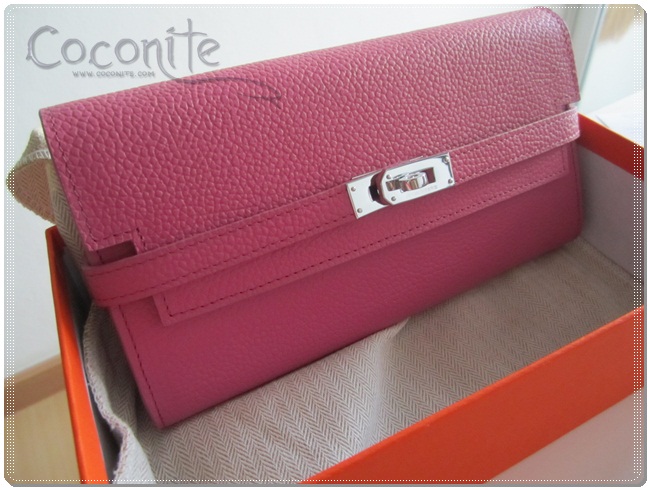 Hermes Kelly Wallet-Organizer ใบยาว หนัง Togo สีชมพู