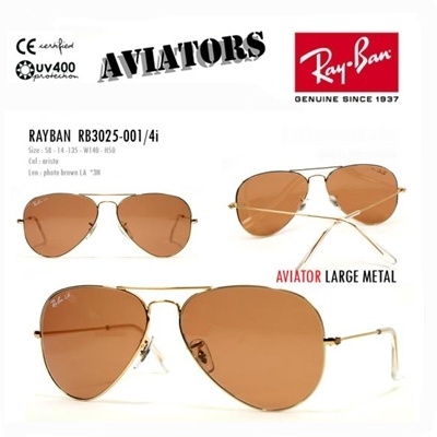 RayBan Aviator RB3025 001/4I L.A. Lens 3F 58 mm กรอบทอง เลนส์ สีชาเข้มปรับสีเข้มขึ้นตามความร้อนเมื่อออกแดด (photo change brown lens) (เลนส์ปรับแสงอัตโนมัติ) ราคาเพียง 5100 บาท เท่านั้น ครับ (หนึ่งในตัว Top ของ Aviator)