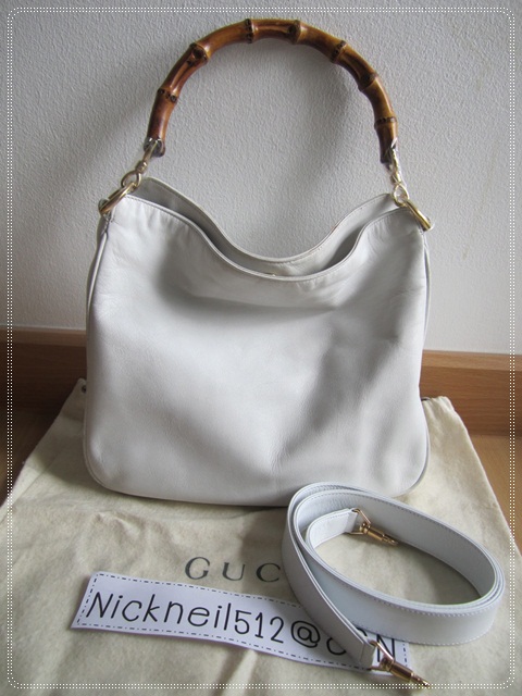 กระเป๋าสะพาย กุชชี่ ของแท้ 100 % มือสอง Gucci Bamboo Hobo White Leather