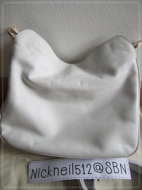 หนังแท้สีขาว สวยงาม หูไม้ มีสายสะพายยาวต่อด้วย กะลังอินเทรน ตอนนี้ เลยค่ะ อะไหล่ทองยังงดงามอยู่เหมือนเดิมค่ะ