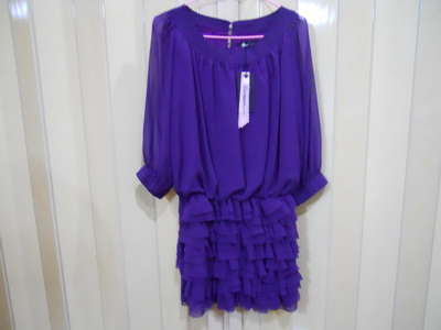 เดรสสั้นไปงาน สีม่วง ผ้าชีฟอง ของใหม่ สภาพ100% ไม่เคยใส่เลย อก 34 นิ้ว ยาวเหนือเข่าเล็กน้อย ป้ายยังอยู่ 400 รวมส่งไปรษณีย์แบบธรรมดา