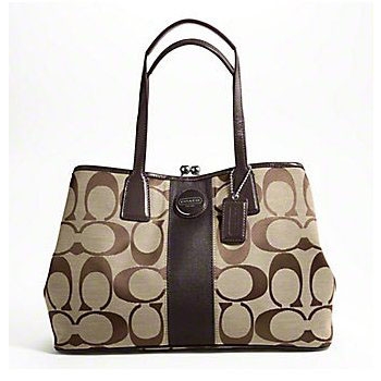 กระเป๋า COACH รุ่น SIGNATURE STRIPE FRAED CARRYALL เพิ่งมาถึงค่ะ สั่งตรงจากอเมริกา สวย หรู มีระดับ เหมาะกับคุณผู้หญิงที่มีรสนิยม และชืนชอบใน COACH ค่ะ ใช้ได้ไม่ว่าจะคล้องแขน หรือสะพายไหล่ จุของได้มากค่ะ มีช่องใส่โทรศัพท์มือถือให้ด้วยค่ะ ราคาเต็มตามป้าย 328 เหรียญ์ ยังไม่รวมภาษีนะคะ วัสดุที่ใช้ หนังแท้สีทอง แบบ Metalic ผ้า Jacquard ลาย COACH สีน้ำตาล ขนาด 16 x 9.5 x 6 นิ้ว สนใจดูรายละเอียดเพิ่มเติมได้ที่ www.bullybrandname.com หรือกด Like เพื่อรับทราบข้อมูลโปรโมทชั่นดี ๆ จากเราค่ะ www.facebook.com/bullybrandname เป็นสมาชิกแฟนเพจก่อน 15 มกราคม 2555 ได้รับสิทธิพิเศษมีส่วนลด 10% ค่ะ