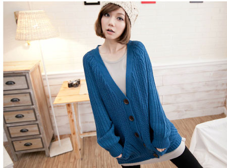 3877CW เสื้อคลุมไหมพรมหนานุ่ม คอวี แขนยาว CAT WORLD มี 5 สี