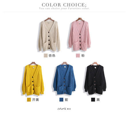 3877CW เสื้อคลุมไหมพรมหนานุ่ม คอวี แขนยาว CAT WORLD มี 5 สี: สีชมพู , สีเหลือง , สีครีม , สีน้ำเงิน , สีดำ