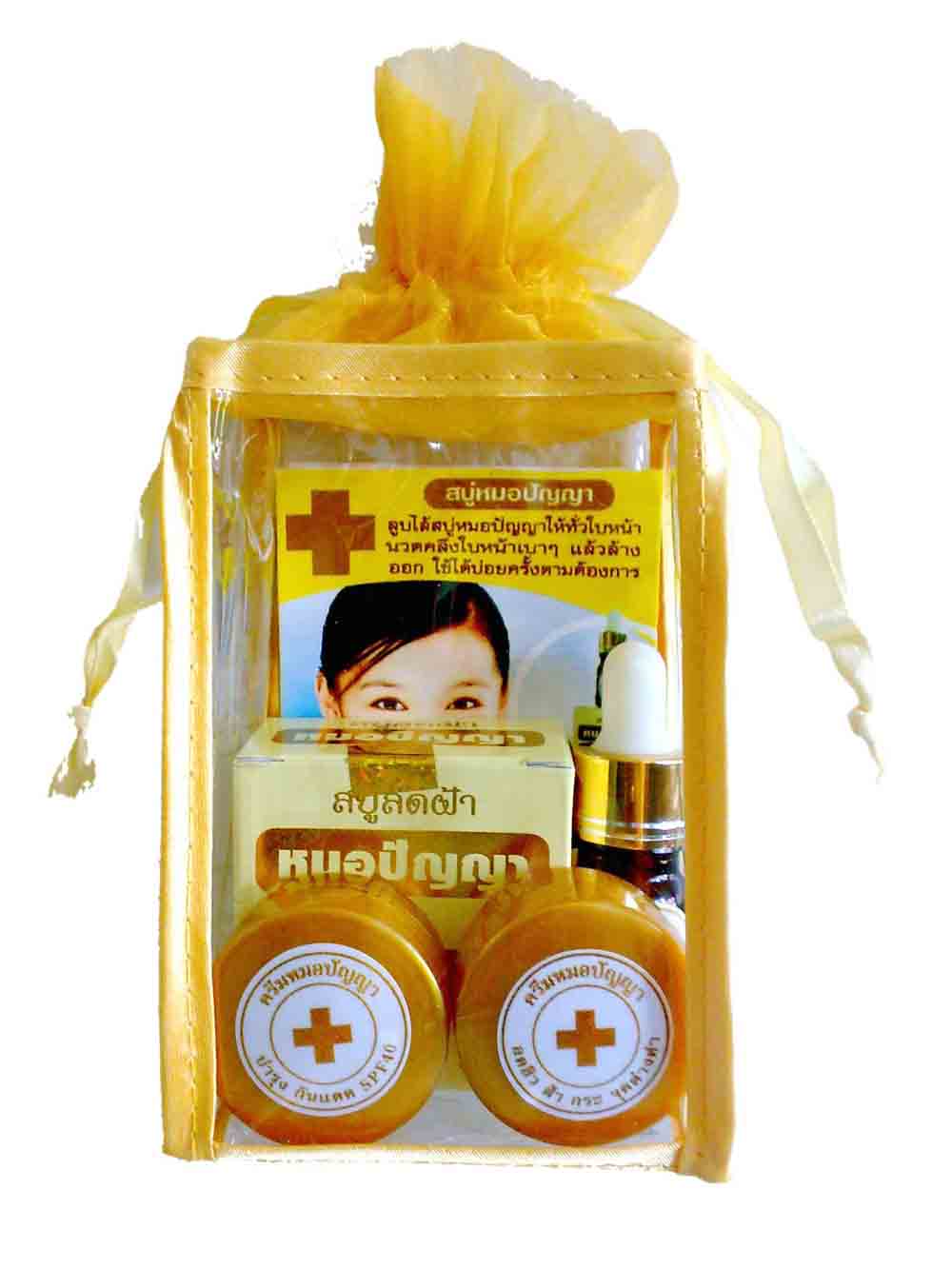 ในชุดประกอบด้วย สบู่ เซรั่ม กันแดดทานาคา ขมิ้นชัน