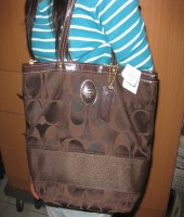 COACH SIGNATURE STRIPE SATEEN TOTE F10837 สี บราวน์มาฮอกกานี เป็นตัวที่ฮิตที่สุดกันตอนนี้ สาวๆจุฬาฯถือกันเยอะมากครับ สวย น่ารัก ดูคล่องแคล่วและไฮโซมากๆ สีน้ำตาลนี้ไม่ค่อยมีตามท้องตลาดด้วย ถือว่าน่าซื้อมาใช้เองมากๆเลยทีเดียวครับ ราคาตัวนี้จริงๆ 14900 ส่วนที่ขายกันอยู่ตามหลังการบินไทยก็ประมาณ11000 แต่ผมขอขายเพียง 7800 เท่านั้น!!!