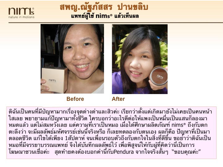 นวัตกรรมผลิตภัณฑ์บำรุงผิวขาว ผลิตภัณฑ์ แรกที่แก้ปัญหาผิวคล้ำที่เกิดจากกรรมพันธุ์ ปัญหาเดียวที่ไม่เคยมีใครแก้ได้จริง เพราะกระบวนการทำงานสามารถแก้ปัญหาได้ลึกถึงระดับยีน ทำให้ผิวขาวกระจ่างใสอย่างมีออร่าจากข้างใน อย่างที่ไม่เคยเกิดขึ้นมาก่อนกับคนผิวคล้ำแต่กำเนิด ด้วยผลิตภัณฑ์ครีมหน้าใสจาก NIMs