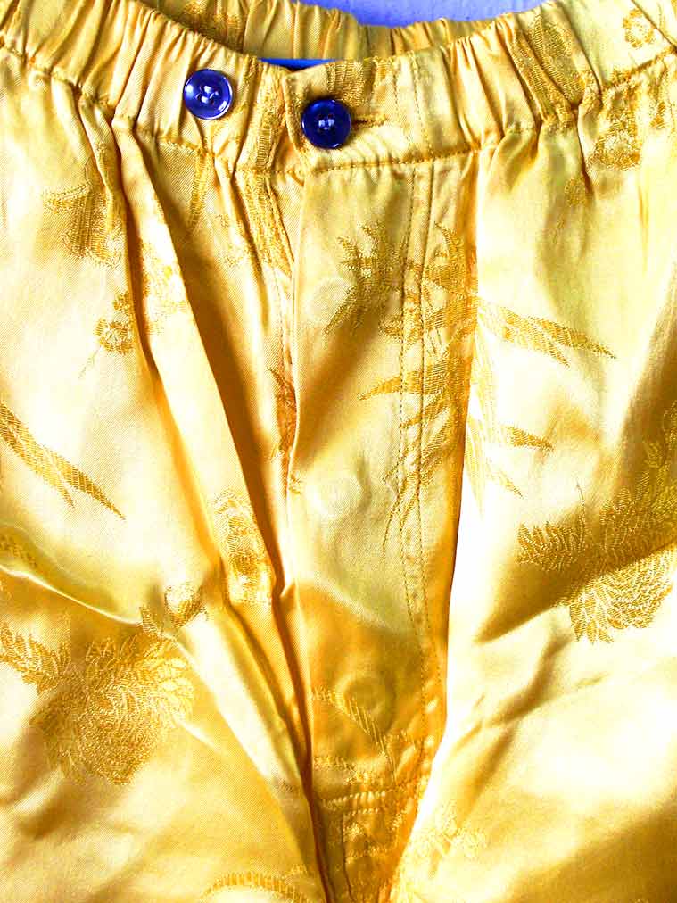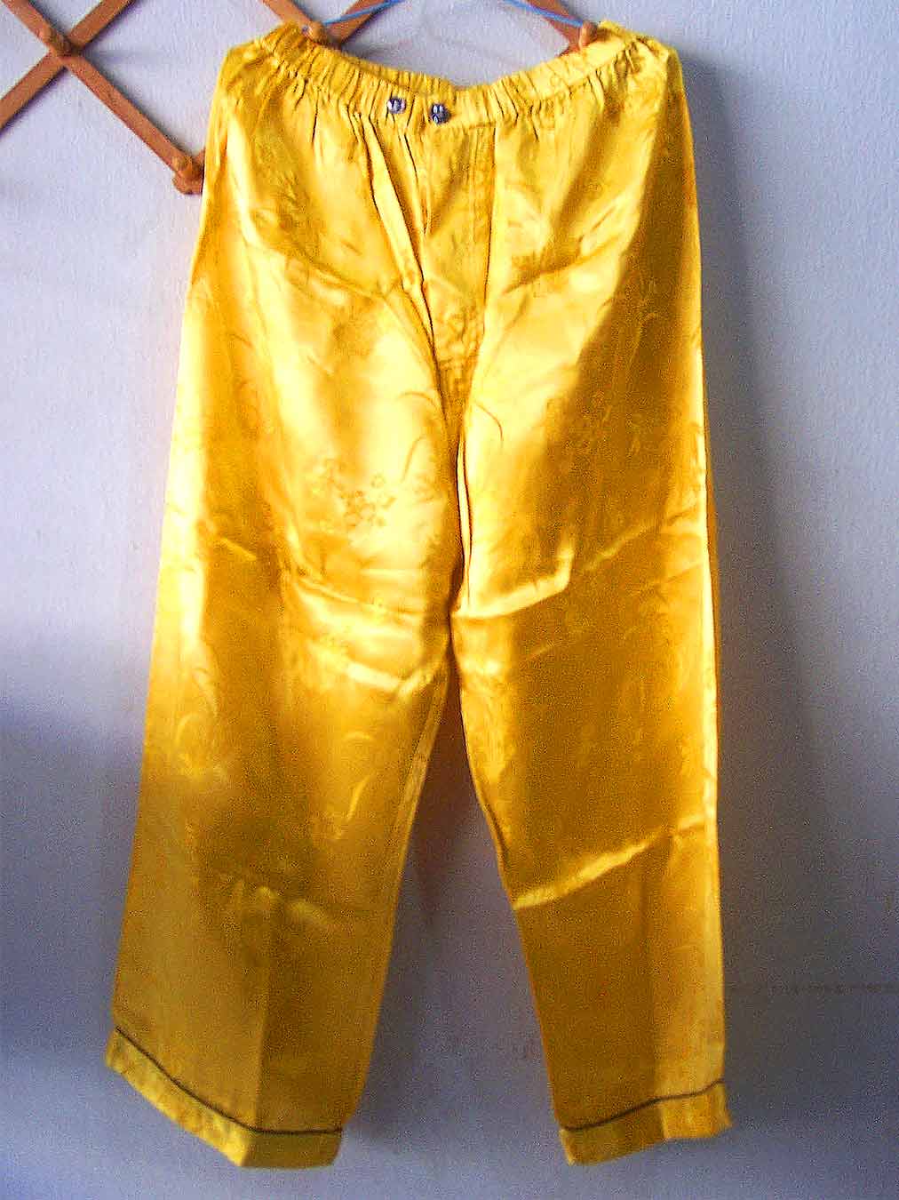 ขายกางเกงแพร เอวยาง สีเหลือง ผ้าแพรแท้เนื้อดี (ปัจจุบันน่าจะไม่มีผ้ารุ่นนี้แล้ว) ขนาด : M เอวกว้างประมาณ 27 นิ้ว ความยาว จากขอบเอวถึงปลายขา 37 นิ้ว
