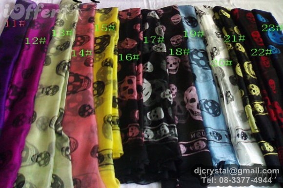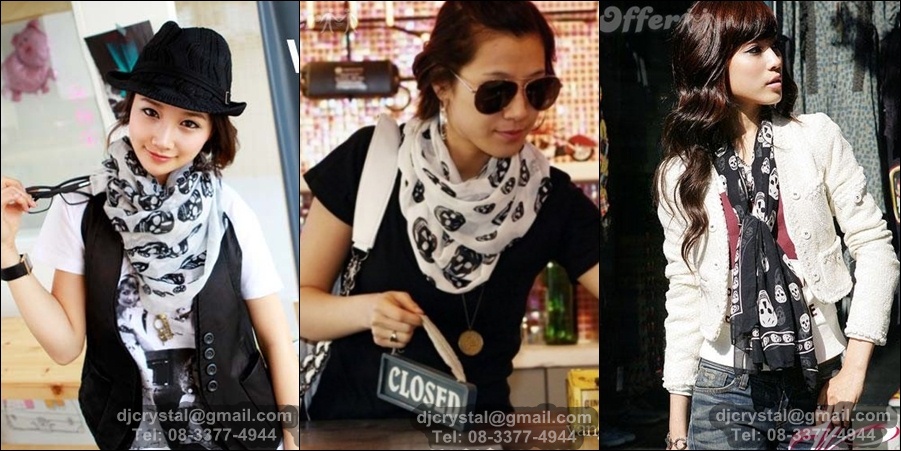 ผ้าพันคอไหม 100% รูปหัวกะโหลก มีหลากสีให้เลือกตามรูปค่ะ