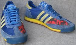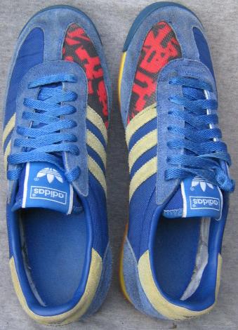 Adidas Jogging ฟ้าพื้นเหลืองแถบหนังกลับหัวแดงหน่อยๆเบอร์ 44