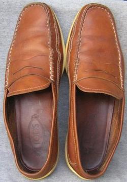 TOD ทรงสวมหนังน้ำตาลพื้นยางขาวรูด้านข้างเบอร์ 44