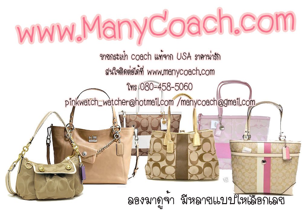 www.manycoach.com ขายและรับ pre-order กระเป๋า coach และ สินค้าอื่นๆ จาก USA นะคะ สินค้ามาทั้งจาก SHOP ,OUTLET และ www.coach.com ค่ะ สนใจใบไหน e-mail หรือ โพสในเว็บบอร์ดมาสอบถามราคากันก่อนได้นะ รับรองว่าได้ราคาถูกใจแน่นอนค่า ราคาถูกกว่าใน shop มากๆๆๆๆๆๆๆๆ :)