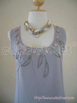 UPDATE!!! เสื้อกล้ามผ้าชีฟองตกแต่งเลื่อมและพลอยสีเทา เสื้อผ้าสวยราคาไม่แพง สินค้าเกรด AAA โดย [Cutie Closet]