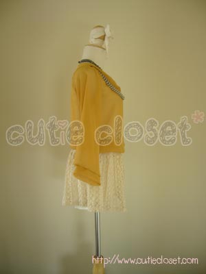 UPDATE!!! เสื้อผ้าชีฟองคอบัวตกแต่งลายแขนยาวสีเหลืองมัสตาร์ด เสื้อผ้าสวยราคาไม่แพง โดย [Cutie Closet]