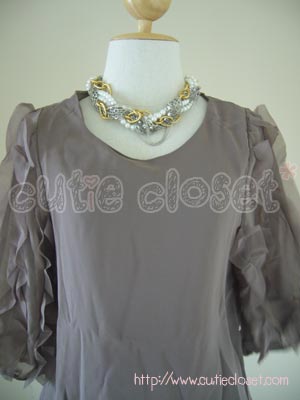 UPDATE!!! เสื้อคอกลมแขนมะเฟืองผ้าชีฟองสีน้ำตาลเทา เสื้อผ้าสวยราคาไม่แพง สินค้าเกรด AAA โดย [Cutie Closet]