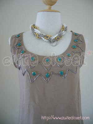 UPDATE!!! เสื้อกล้ามผ้าชีฟองตกแต่งเลื่อมและพลอยสีน้ำตาล เสื้อผ้าสวยราคาไม่แพง สินค้าเกรด AAA โดย [Cutie Closet]