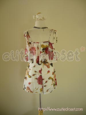 SALE!!! จัมพ์สูทหรือชุดหมีผูกไหล่ผ้าชีฟองระบายสีขาวลายดอกไม้ เสื้อผ้าสวยราคาไม่แพง สินค้าเกรด AAA โดย [Cutie Closet]