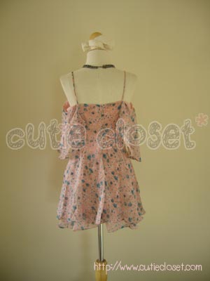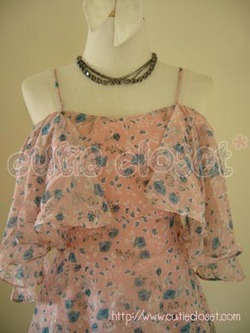 NEW!!! เดรสผ้าชีฟองเปิดไหล่ตกแต่งระบายสีชมพูลายดอกไม้ เสื้อผ้าสวยราคาไม่แพง สินค้าเกรด AAA โดย [Cutie Closet]