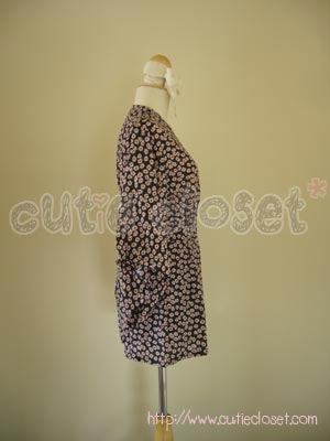 SALE จัมพ์สูทหรือชุดหมีผ้าฝ้ายแขนญี่ปุ่นสีดำลายดอกไม้สีชมพู เสื้อผ้าสวยราคาไม่แพง สินค้าเกรด AAA โดย [Cutie Closet]