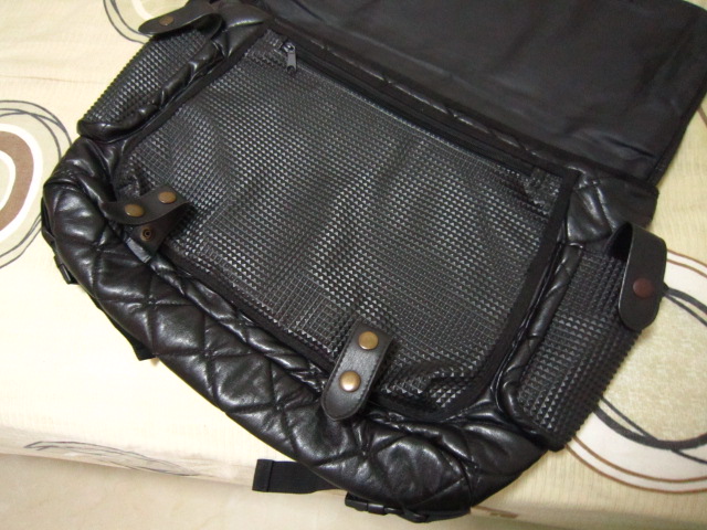 เป็นกระเป๋าหนัง ปักหมุดสีทอง ด้านในกระเป๋าเป็นผ้า