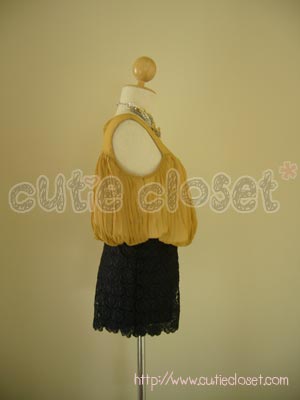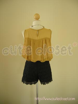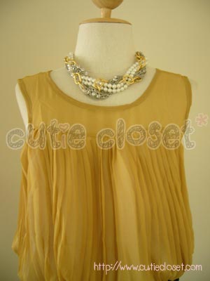 UPDATE!!! เสื้อผ้าชีฟองคอกลมตัดต่อใต้อกอัดพลีทสีเหลืองมัสตาร์ด เสื้อผ้าสวยราคาไม่แพง สินค้าเกรด AAA โดย [Cutie Closet]
