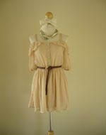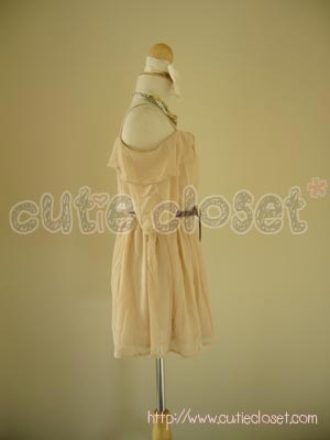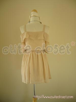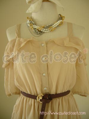 UPDATE!!! เดรสเจ้าหญิงผ้าชีฟองเปิดไหล่กระดุมหน้าสีเบจ เสื้อผ้าสวยราคาไม่แพง โดย [Cutie Closet]
